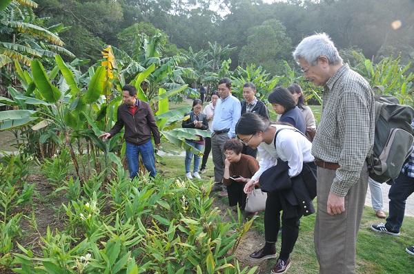 12月21日下午,为了加快推进姜花属品种国际登录的工作,促进姜花属植物及姜目栽培植物的科学研究与产业发展,姜花属品种登录专家组中国科学院植物研究所靳晓白研究员、中国科学院华南植物园夏念和研究员、华南农业大学范燕萍教授、仲恺农业工程学院刘念教授、福建农业科学研究院黄敏玲研究员、闽南师范大学陆銮眉教授等一行10人来我园姜目植物区考察。